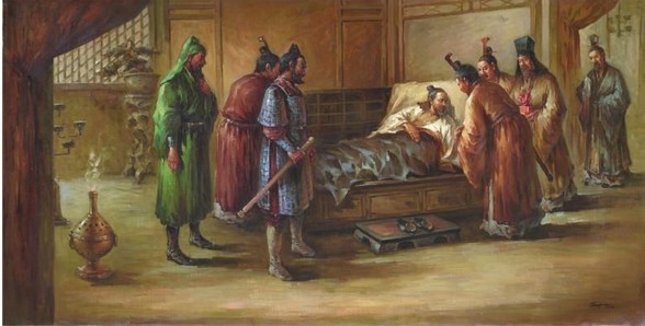 这年冬天,陶谦忽然派人去请刘备,说有要事相商。刘备赶到郑城,才知陶谦病重,危在旦夕。他走近陶谦病榻,陶谦有气无力地说:“请君前来,不为他一事,只因老夫病危,朝夕难保,现在徐州大印在此,请君统领此州,万勿再辞。”