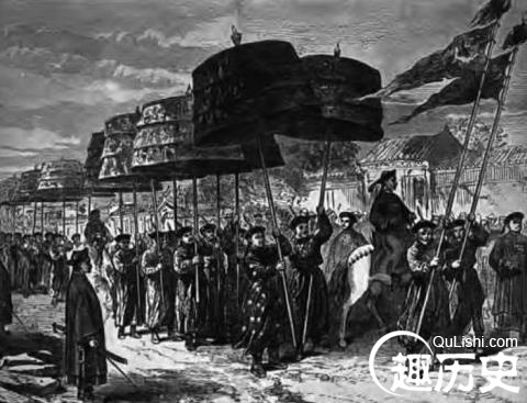 同治大婚中从皇宫出发前往新娘(皇后)府邸的迎亲队伍。